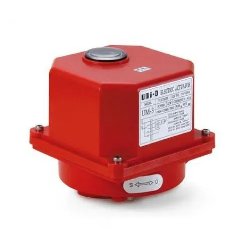 UM-3直结电动执行器产自台湾,本产品电动机采用低耗电,高效率且附温度保护开关,耐侯性极佳的强力马达,配合经硬化处理,精密加工齿轮,具有低马力、高扭力、低噪音等特性。电动执行器主体采用铝合金才质铸造成型,并于主体壳罩所有接缝处,均备有防水封件,所以适用于屋外环境使用。以下为UM-3直结电动执行器详细内容介绍。